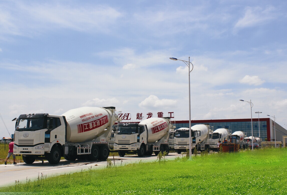 2014年7月17日下午,10臺(tái)嶄新的攪拌車齊聚趙龍重工義烏生產(chǎn)基地廠區(qū)大門整裝待發(fā),即將發(fā)往湖南長(zhǎng)沙市西城偉業(yè)混凝土有限公司。